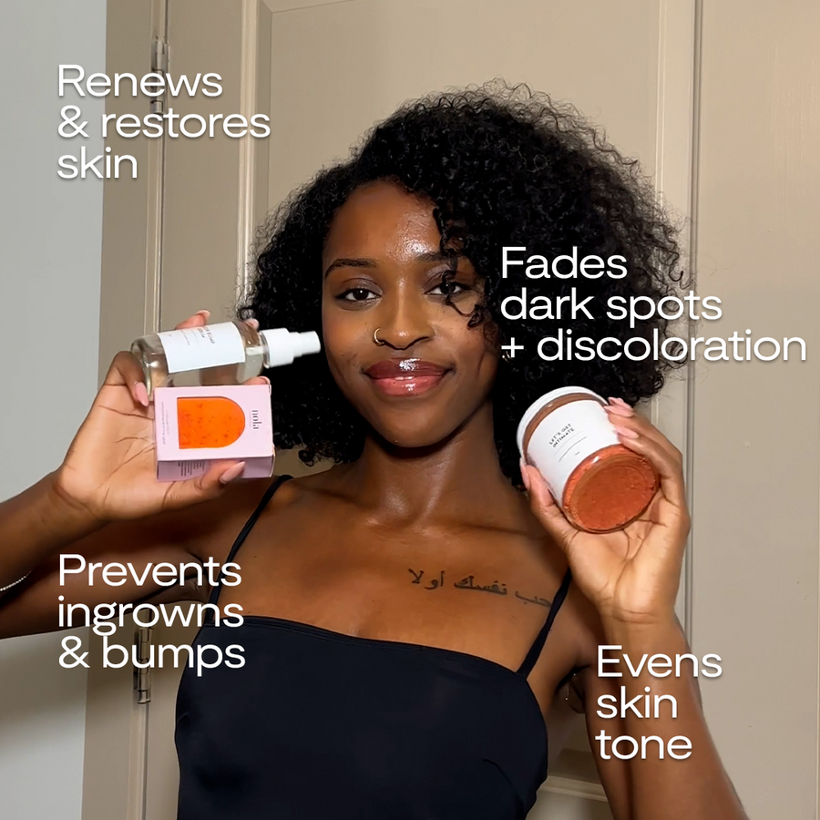 - Easy 4-step routine in one kit: smooths + softens skin, evens tone, and nixes acne scars, razor bumps, and ingrowns