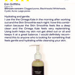 I use the the Omega Kale in the morning after working out and the Skin Smoothie each night. I love this combination because the Skin Smoothie feels like a deep clean and the Omega Kale feels very replenishing. Using both helps my skin not get dried out or oil and keeps it at a great balance. I would definitely recommend this to anyone who is looking for something that feels gentle and hydrating while cleansing your skin.